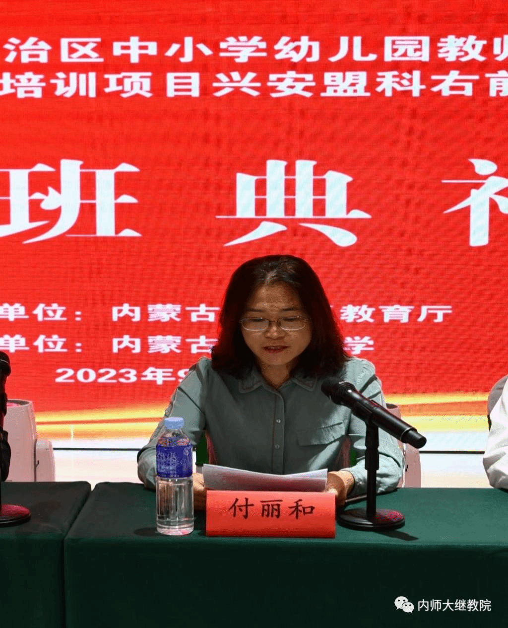 清风送爽,硕果飘香。9月17日上午,我校助力乡村振兴项目——“国培计划(2022)”内蒙古自治区欠发达地区农村学校“一对一”精准帮扶兴安盟科右前旗小学骨干教师培训在维也纳大酒店举行了开班仪式。本项目由自治区教育厅主办、6776永利集团承办、yl6776永利集团具体组织实施。兴安盟科右前旗教育局党组成员、副局长张静媛,我校yl6776永利集团副院长付丽和、高师培训中心主任高丽桃、培训部副主任陈毕力格、培训部教师薛佳琦以及科右前旗300位小学语文、数学、英语、道德与法治4个学科的骨干教师参加了开班仪式。