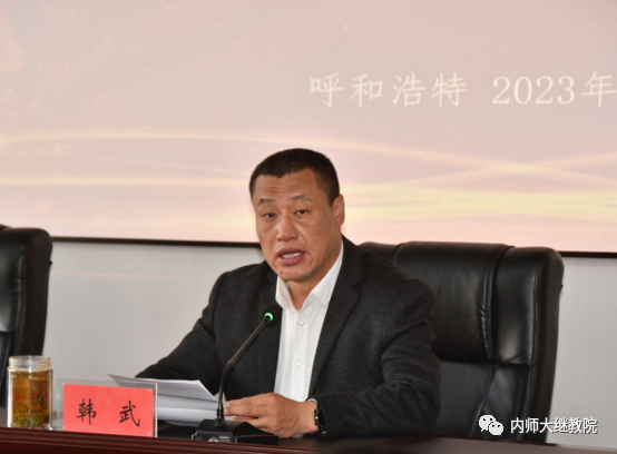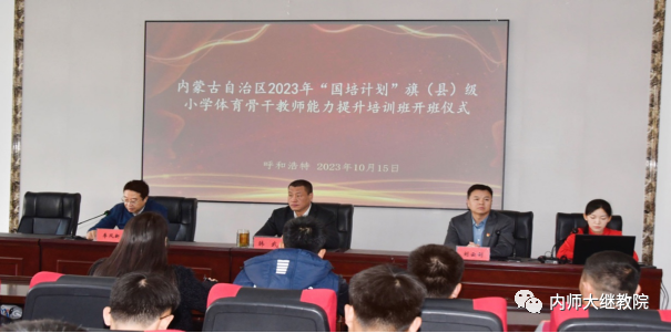 为进一步提高内蒙古自治区旗(县)级小学体育教师的专业水平,助力我区乡村教育振兴,由我校承办的“国培计划(2023)”—内蒙古自治区旗(县)级中小学紧缺学科骨干教师(小学体育)培训于10月15日在我校体育学院二楼多媒体会议室开班。体育学院党委书记韩武,体育学院副院长、项目负责人兼首席专家李凤新,yl6776永利集团党总支副书记、副院长刘云剑,培训班班主任及97名参训教师参加开班仪式。