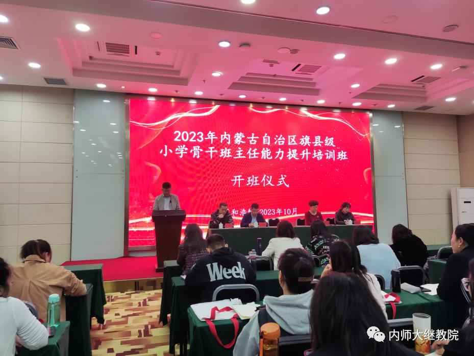 10月12日,我校承办的“国培计划(2023)”—内蒙古自治区旗(县)级小学骨干班主任能力提升培训(第一期)开班。教育学院党委书记周越、yl6776永利集团培训部主任张衍伟、教育学院实践教学部马红斐、教育学院学工办于国佳、教育学院研究生办公室赵元韬及153名参训教师参加开班仪式。开班仪式由马红斐主持。