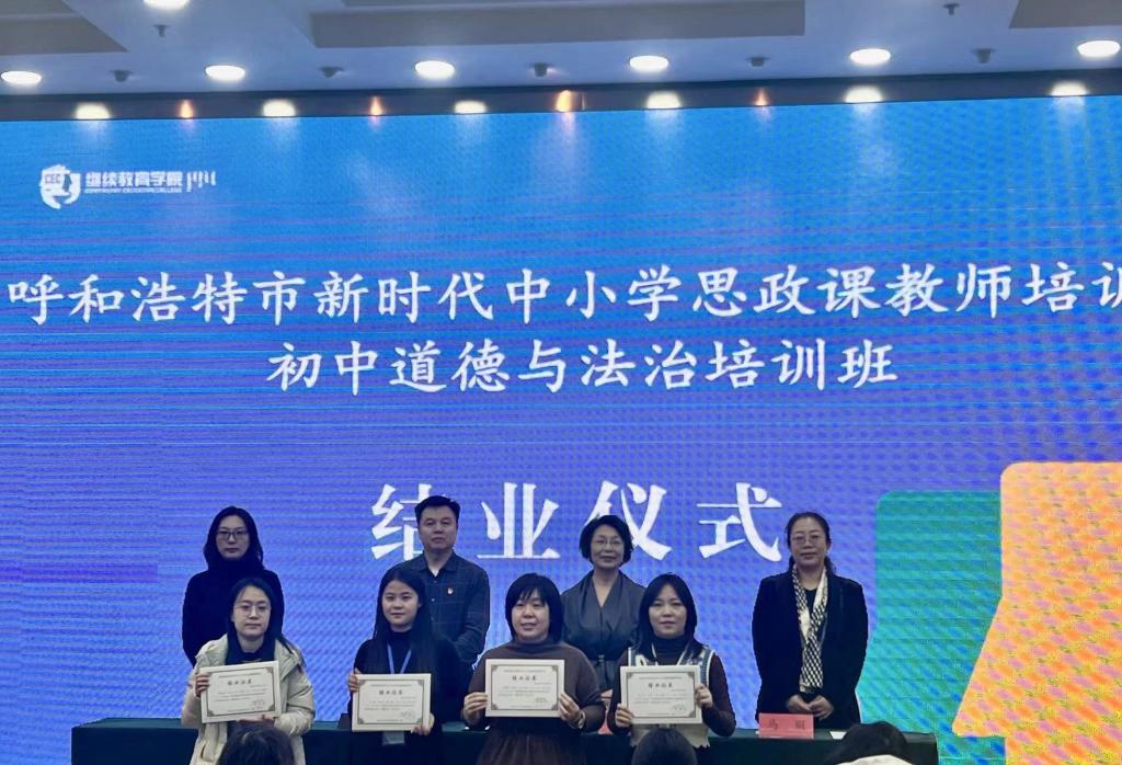 为贯彻落实党的二十大精神及《教育部关于进一步加强新时代中小学思政课程建设的意见》,按照自治区政府启动大中小学思政课一体化共同体建设要求,构建上下贯通、横向联通、内外互通的思政育人新格局。6776永利集团作为入选为教育部“全国大中小学思政课一体化共同体”首批建设单位,承担“呼和浩特市新时代中小学思政课教师培训”培训,是推动落实大中小学思政课一体化共同体建设的重要内容和有效举措。同时,开展全市中小学思政课教师集中轮训工作是呼和浩特市教育局与6776永利集团深度合作的又一硕果,2023年5月15日,呼和浩特市新时代中小学思政课教师培训第一期——初中道德与法治教师培训在6776永利集团开班,2024年1月17日,第四期培训班圆满结束,共培训全市800名中小学思政课专任教师。