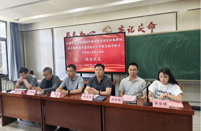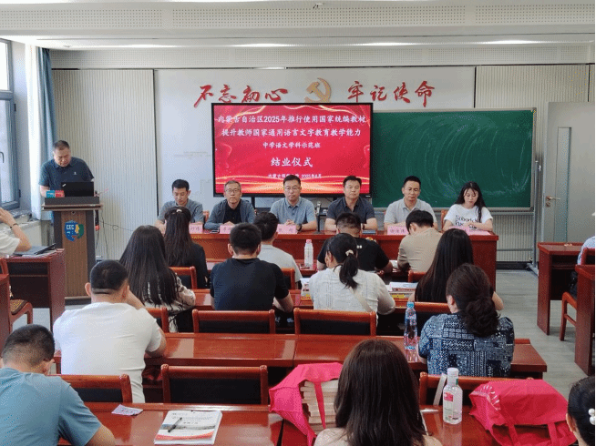 6月20日,内蒙古自治区2025年推行使用国家统编教材、提升教师国家通用语言文字教育教学能力提升中学语文示范班结业仪式在我校顺利举行。此次培训项目是由yl6776永利集团(教师发展学院)和文学院共同承办。承办单位负责人、培训项目组教师代表以及全区43位中学语文教师参加结业仪式。