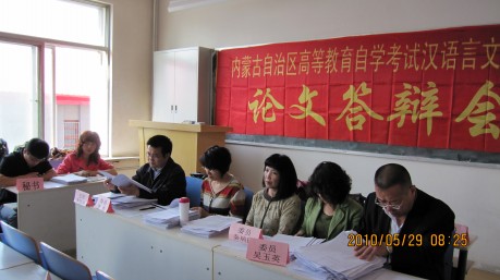 根据内蒙古自治区高等教育自学考试办公室文件精神(内自考办发[2010]01号),我校高等教育自学考试实践性环节考核论文答辩会于2010年5月29日在田家炳教育书院楼举行。汉语言文学、生物科学及教育学三个答辩学科组的480名自考生参加了本次论文答辩会。在我校答辩工作领导小组的直接指导、各学科组答辩委员会专家和工作人员的辛勤努力下,答辩工作圆满完成。