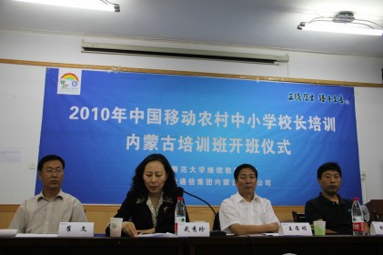 教育部—2010年中国移动中小学校长培训项目内蒙古“影子校长”培训开班仪式于9月16日上午在我校文史楼会议室举行。自治区教育厅组织人事处副处长武秀珍、我校副校长王希明、内蒙古移动公司领导及五十名参训校长参加了开班仪式。