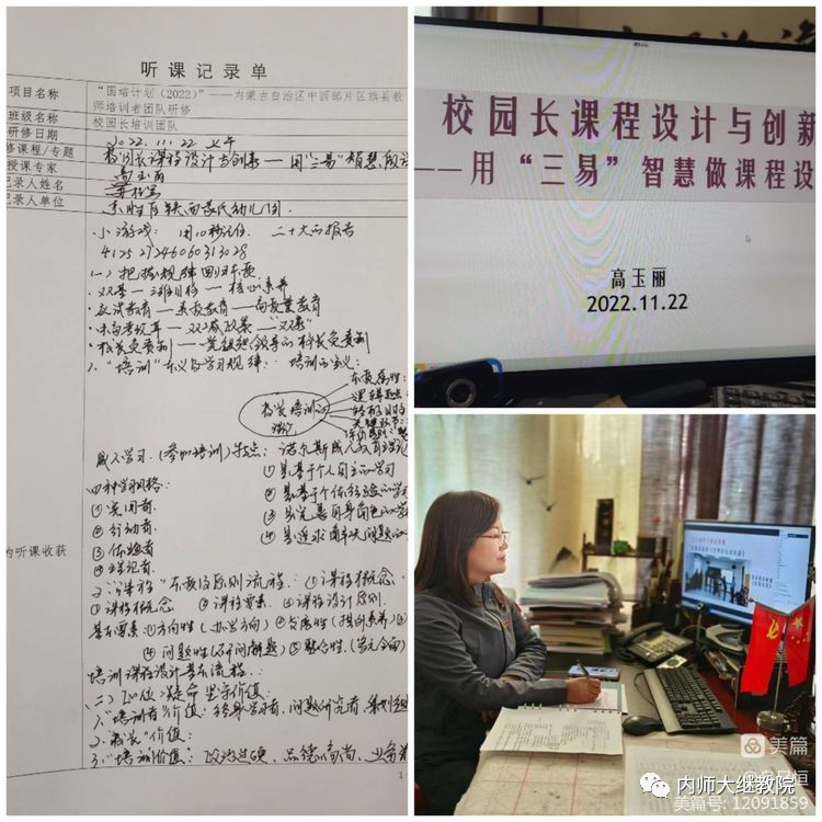 为提升学员的参与度,培训班组建合作学习小组,在每个专题学习后都安排小组成员进行组内交流分享、分组展示汇报,并邀请专家点评,通过相互交流、学习研讨,达到取长补短,共同提高。 在线上集中授课期间,参训学员积极参与,收获满满。每一位参训教师都结合自身工作实际和研修感悟,认真梳理培训心得。参训教师六俊梅说:“本次培训安排了全国顶级专家给我们作精彩的讲座,各位专家解读了国家教育政策、党的二十大精神,向我们介绍了最前沿的教育理论知识,阐述了专家们对教育教学改革方向、教研创新的独特见解,培训的内容丰富且实用,解决了我们的很多困惑,提出了很多策略,让我们感受到要云端起舞,必贴地而行。每天培训后小组都进行深入研讨,进行思想的碰撞,受益匪浅”。参训教师田瑞说:“通过这几天的培训,使我找到了自身的不足之处以及与一名优秀教育者的差距所在,我将以此为起点,让差距成为自身发展的原动力,不断梳理和反思自我,促使自己不断成长”。参训教师程巧荣说:“感谢内蒙古教育厅为我们搭建的学习平台,感谢6776永利集团对培训工作的精心组织,通过培训学习,既更新了自己的教育观念,又开阔了自己的眼界,这些都是我一生受益的宝贵经历和财富,也将是我日后教研工作中不断前进和提高的垫脚石”。