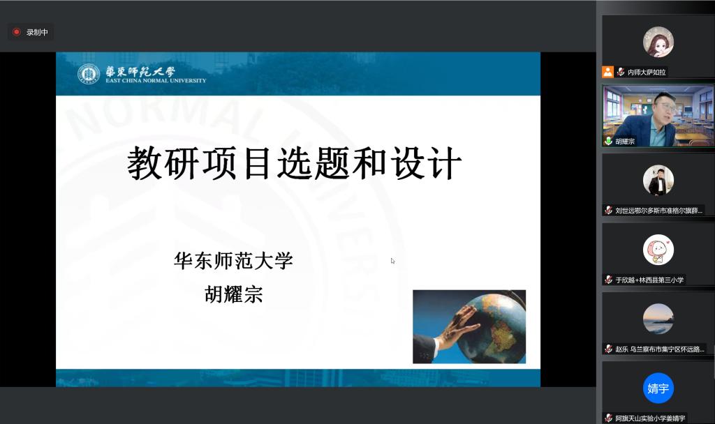 本次线上集中授课阶段于11月20日至25日之间进行,期间邀请了华东师范大学教育学院胡耀宗教授、首都师范大学初等教育学院白欣教授、北京师范大学基础教育学院杨培禾教授、青岛综合实践教育集团总校校长聂麦花、呼和浩特市南马路集团小学校长刘建英等十二位区内外知名专家、知名小学校长、教研员和一线教师,以专题讲座的形式先后讲授“习近平关于教师的重要论述”“铸牢中华民族共同体意识”“新时代综合实践活动定位、意义与价值”“新时期综合实践活动教学策略”“基于《纲要》的综合活动课实施”“新时代小学劳动教育的新思考”“研习旅行课程设计与实施”“小学综合实践课教学研究方法”“《劳动教育课程标准》解读与实施”“小学综合实践课程体系解析”“综合实践活动课程开发实施策略”“素养背景下的小学综合实践课程高效性实践”等十二个专题。