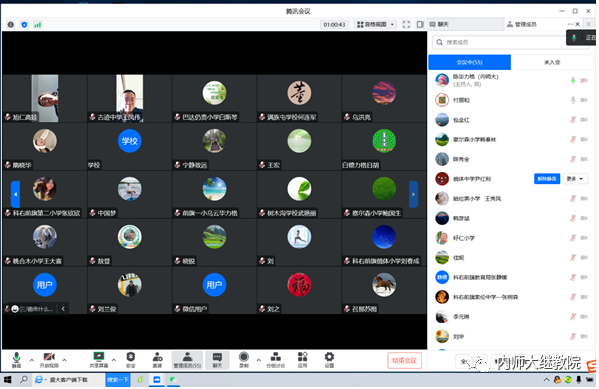 王利院长首先对参训学员表示欢迎,并对给予培训大力支持的中国教师研修网和科右前旗教育局表示感谢。王利表示此次举办的中小学党组织书记和校长高级研修班是国培计划(2021)”——内蒙古自治区欠发达地区农村学校“一对一”精准帮扶培训项目中的重要研修项目,中小学书记和校长作为学校发展的领头羊,事关学校的高质量发展。为做好中小学书记和校长培训,yl6776永利集团协同中国教师研修网在前期充分调研的基础上,精心研制培训方案,创新培训模式与方法,将以全程高质量的实施确保参训学员得到提升和发展。作为培训承办方,王利希望参训的中小学党组织书记和校长充分认识本次培训的重要意义,增强学习动力,全心投入学习,积极参与培训各环节,不断提升个人的专业能力和水平,切实提升线上培训的收获感,在培训结束后,能把培训所学、所得、所获运用到学校管理实践中,达到学以致用,提质增效,为促进自治区基础教育的高质量发展做出更大的贡献。