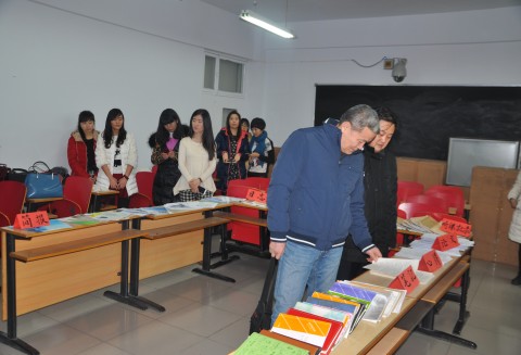 结业典礼之前,亚新副校长检查观看了以学科为班级开展的研修成果展示。