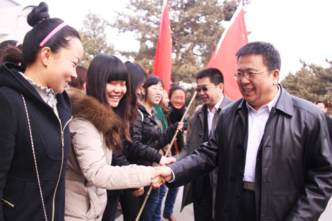 杨一江校长、刘前贵副校长为顶岗实习的学生送行