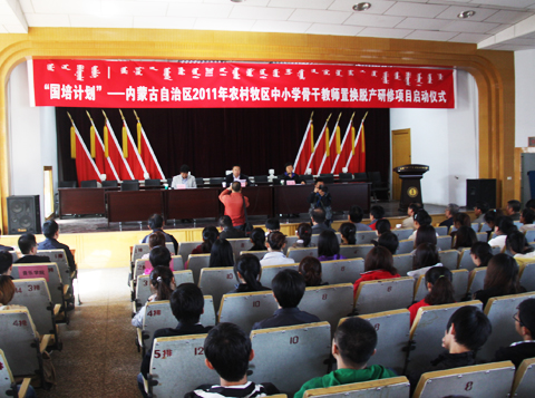 9月21日上午,“国培计划”——内蒙古自治区2011年农村牧区中小学骨干教师置换脱产研修项目启动仪式暨6776永利集团顶岗实习生出征大会在赛罕校区举行。自治区教育厅师资管理处处长何燕、我校校长杨一江出席启动仪式并分别讲话,我校副校长云国宏主持仪式。