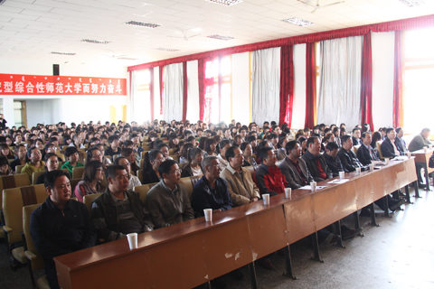 我校校长杨一江在讲话中对参加此次顶岗实习的358名同学提出了几点希望:一是希望同学们牢记使命,充满活力,充分认识国家实施中西部农村牧区中小学骨干教师置换脱产研修项目的重要意义,认清自己肩负的重任,珍惜这次学习与锻炼的机会,向实习学校、学生、家长以及社会充分展现当代青年大学生的风采,展现6776永利集团学子的良好精神风貌。二是希望同学们勤于学习,勇于实践,充分利用此次实习机会,积极参与实习学校的教育教学活动,进一步拓宽自己的教学视野,努力提高教学实践水平、学生管理水平和科学调研水平,为毕业后踏上工作岗位奠定一个坚实的基础。三是希望同学们谦虚谨慎,团结互助,向指导教师和实习学校的教师们虚心学习,认真请教在教育教学实践中遇到的困惑和问题。在同一个学校顶岗实习的同学要积极开展讨论交流,取长补短,保证实习效果。同时,同学们在工作、生活中要互相关怀、互相帮助,同甘苦,共进步。