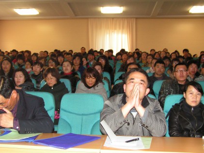刘前贵副校长首先简要介绍了我校基本情况,他指出,“国培计划”——内蒙古2010年农村牧区中小学骨干教师短期集中培训项目是贯彻落实全国教育工作会议精神和《国家中长期教育改革和发展规划纲要》的一个重大项目,是党和国家实施西部开发战略、建设和谐社会、促进教育公平的重大举措,是实现党的十七大提出的“加强教师队伍建设,重点提高农村教师素质”这一目标的基础工程。自治区教育厅将“国培计划”2010年全区中小学骨干教师培训任务委托我校,既是对我校教师培训工作的充分肯定,同时也对我校的继续教育工作提出了更新更高的要求。开班典礼结束后,我校教育科学学院朱颜杰教授作了关于“骨干教师专业发展”的专题讲座。