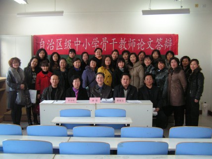 新一轮自治区级中小学信息技术、中学英语、学前教育、小学语文、小学数学五个学科的骨干教师论文答辩会先后于2010年3月13日至4月10日在我校举行。在自治区级骨干教师论文答辩工作领导小组的直接指导、各个学科组答辩委员会专家和工作人员的辛勤努力及参辩教师的积极配合下,答辩工作进展顺利。中小学信息技术、中学英语、学前教育、小学语文骨干教师论文答辩工作已经按期完成各项任务,圆满结束,共有278人获得了自治区级中小学骨干教师证书。小学数学骨干教师论文答辩会定于4月10日举行。