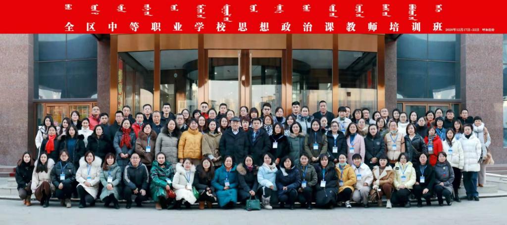 为深入贯彻落实《关于全面深化新时代教师队伍建设改革的意见》(中发〔2018〕4号)精神和习近平总书记关于铸牢中华民族共同体意识的重要论述,进一步提升全区中等职业学校思想政治课教师的组织管理、教育教学能力,加快建成一支师德高尚、素质优良、业务精湛的思想政治课教师队伍,12月16日—20日,学院举办了“关于举办全区中等职业学校思想政治课教师培训班”,来自全区十二个盟市的中等职业学校思想政治课教师共91人参加了此次培训班。
