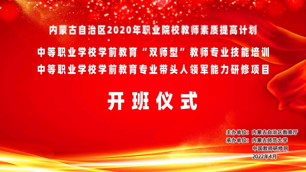 由我校承办的内蒙古自治区2020年职业院校教师素质提高计划“中职学前教育专业——双师型教师专业技能培训”“中职学前教育专业——专业带头人领军能力研修”两个项目于4月15日在线上举行开班仪式,仪式由yl6776永利集团副院长付丽和主持,内蒙古自治区中小学幼儿园教师培训项目执行办公室负责人、yl6776永利集团党总支副书记、主持行政工作副院长王利教授在开班仪式上致辞,班主任沙其尔老师宣读了《参训教师守则》,参训教师代表赤峰市松山区职教中心张晓颖做了表态发言。班主任及参训教师参加了开班仪式。