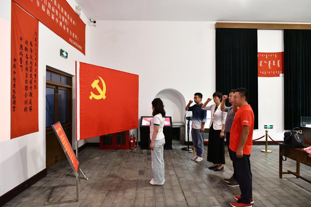 8月14日,在组织实施兴安盟骨干班主任能力提升培训班和“国培计划”“一对一”精准帮扶项目调研期间,yl6776永利集团教工第一党支部开展“传承红色基因焕发时代光芒”主题党日活动,参观了内蒙古师范学院礼堂旧址和“五一会址”。
