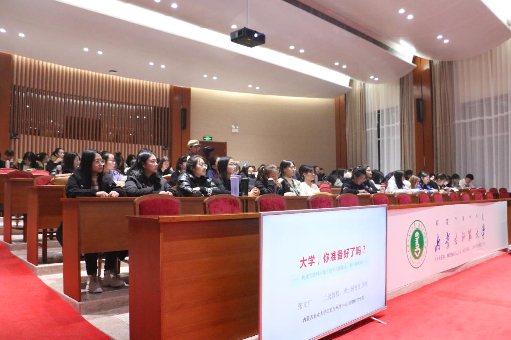 2020年12月10日,在赛罕校区信息楼报告厅,我院2020级全日制专升本全体新生聆听了职业生涯规划课程系列讲座第四讲。本次讲座由内蒙古农业大学信息与网络中心主任/动物科学学院二级教授张文广主讲,yl6776永利集团副院长召那苏图主持,yl6776永利集团党总支书记武俊明点评,讲座内容为“大学,你准备好了吗?”