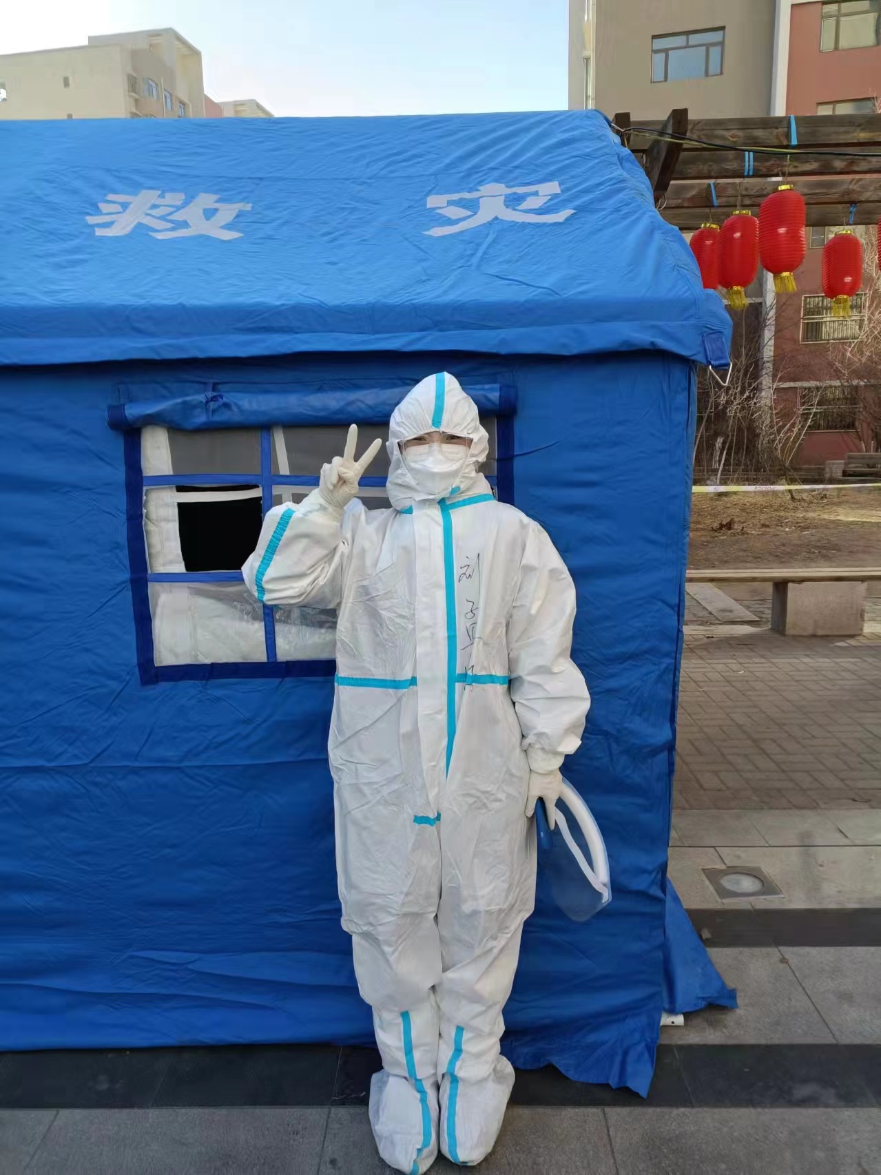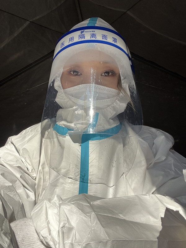 疫情突然爆发,为响应国家和地方政府的全民核酸检测的号召,孙利霞同学自愿报名志愿者,负责辖区核酸检测人员信息记录和维持秩序。她说:“我国是世界上抗击新冠肺炎最成功的国家,我们一直对共度此次疫情有着绝对的信心,在这没有硝烟的战争里,无数的医护人员和工作人员始终坚守在疫情一线。在此次志愿者活动中,我体会到了在抗击疫情的一线,在我们身边为人民群众日夜奋战的医护人员和政府工作人员,他们手挽手、肩并肩,筑起了一道坚不可摧的生命防线,是我学习的榜样。”