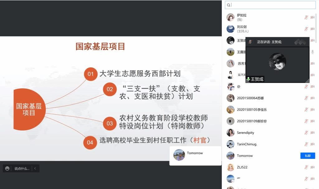 为进一步推进学院专升本毕业生就业工作,帮助专升本毕业生适应就业形势,转变就业观念,树立就业信心,提升就业能力,5月10日晚,yl6776永利集团举办线上就业指导专题讲座,邀请学校招生就业处职业发展中心王贺成老师和王新老师为学院专升本毕业生进行针对性就业指导。学院党总支副书记、主持行政工作的副院长王利,副书记、副院长刘云剑,副院长召那苏图参加会议,班主任老师及109名专升本毕业班在线聆听讲座,讲座由刘云剑主持。