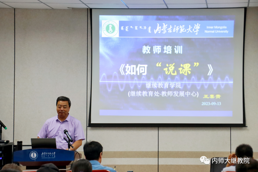 为提高我校青年教师的教学水平,进一步夯实青年教师的教学基本功,建设一支专业过硬、素质优良的青年教师队伍,9月13日,我校yl6776永利集团(继续教育处、教师发展中心)邀请王喜贵教授在赛罕校区文史楼三楼学术报告厅为我校教师开展了题为《如何“说课”》的专题培训。来自我校各学院、各部门100余位教师参加了培训。