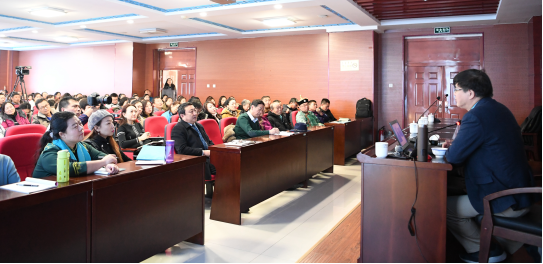“三十年前,家乡是一个概念,别的没有;二十年前,家乡是我当年长大的院落和为数不多的亲人;十年前,家乡已成为我的牵挂和祝福;而现在,我才明白,家乡是情怀、是责任,更是草原人民的呼唤……”。天气虽冷,台下早已座无虚席,在讲座即将开始时,主持人用幽默的言语真诚地欢迎岳晓东博士“回家讲学”。