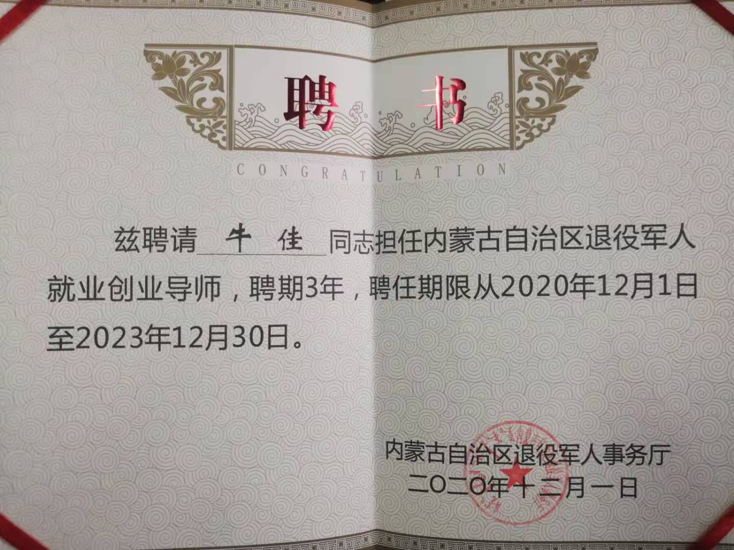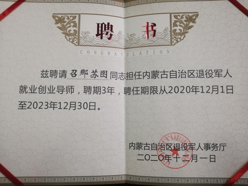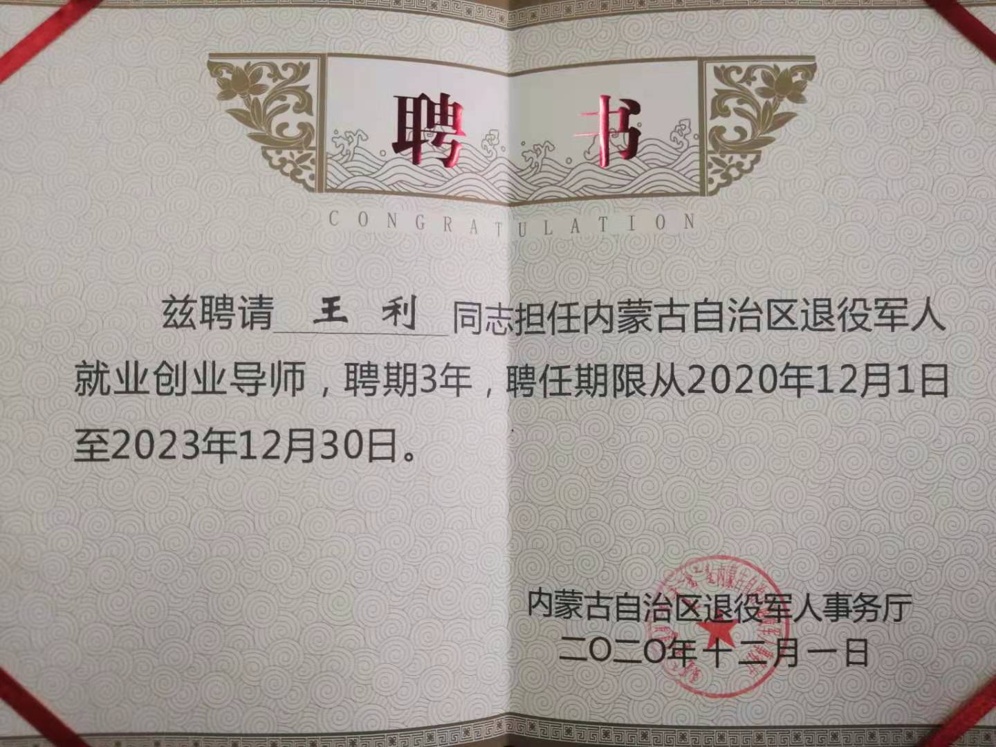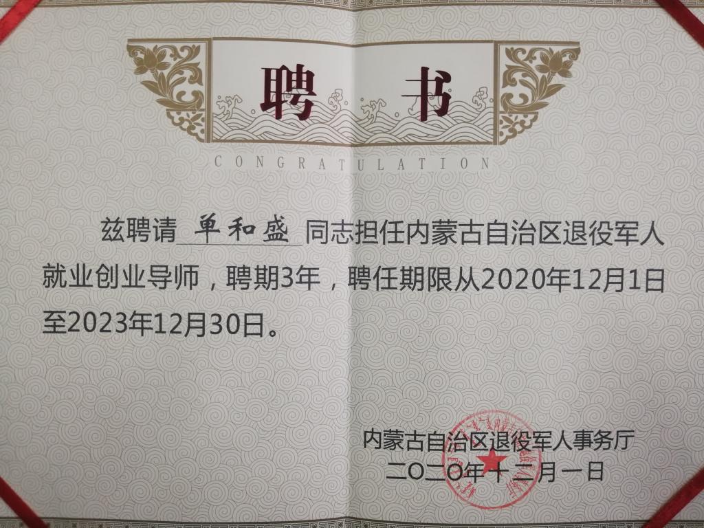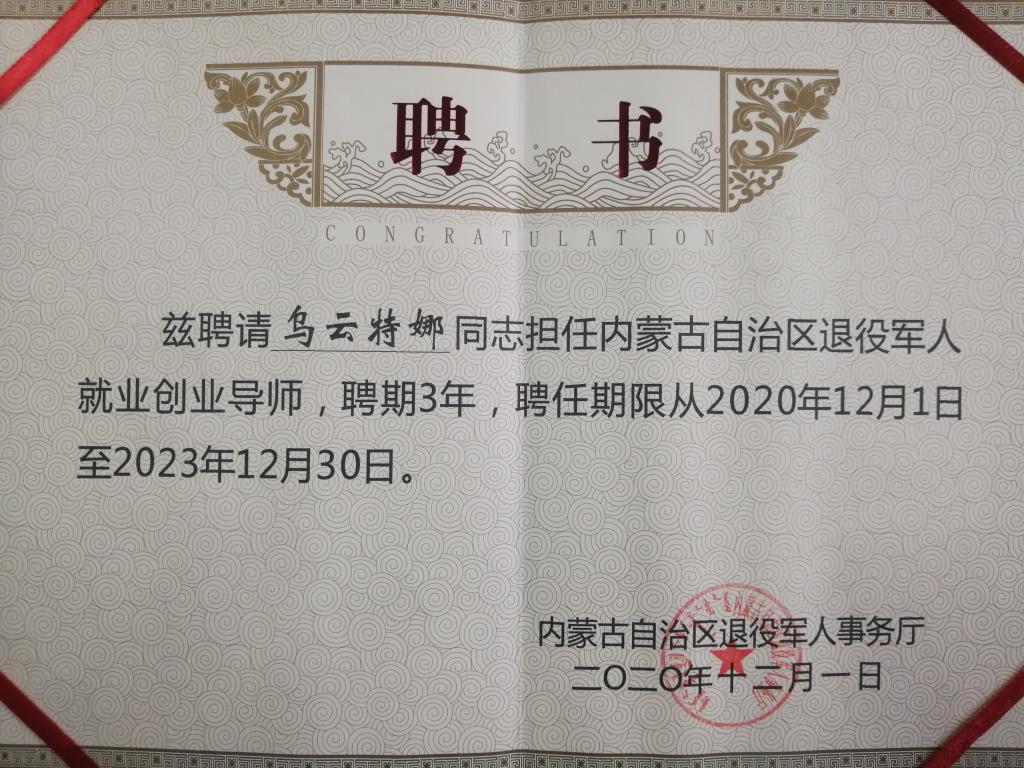 2020年7月,我校yl6776永利集团组织相关学科、领域专家、学者共计54位教师进行了统一申报。经过自治区退役军人事务厅遴选,我校有12位教师被聘为“内蒙古自治区退役军人就业创业导师”。
