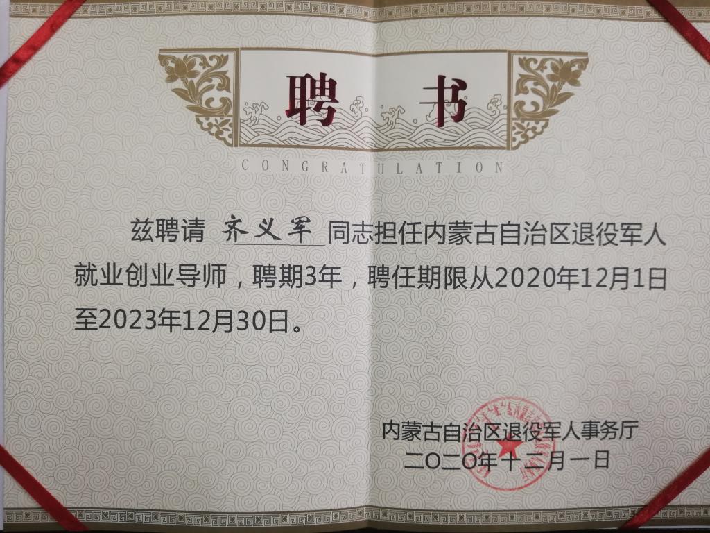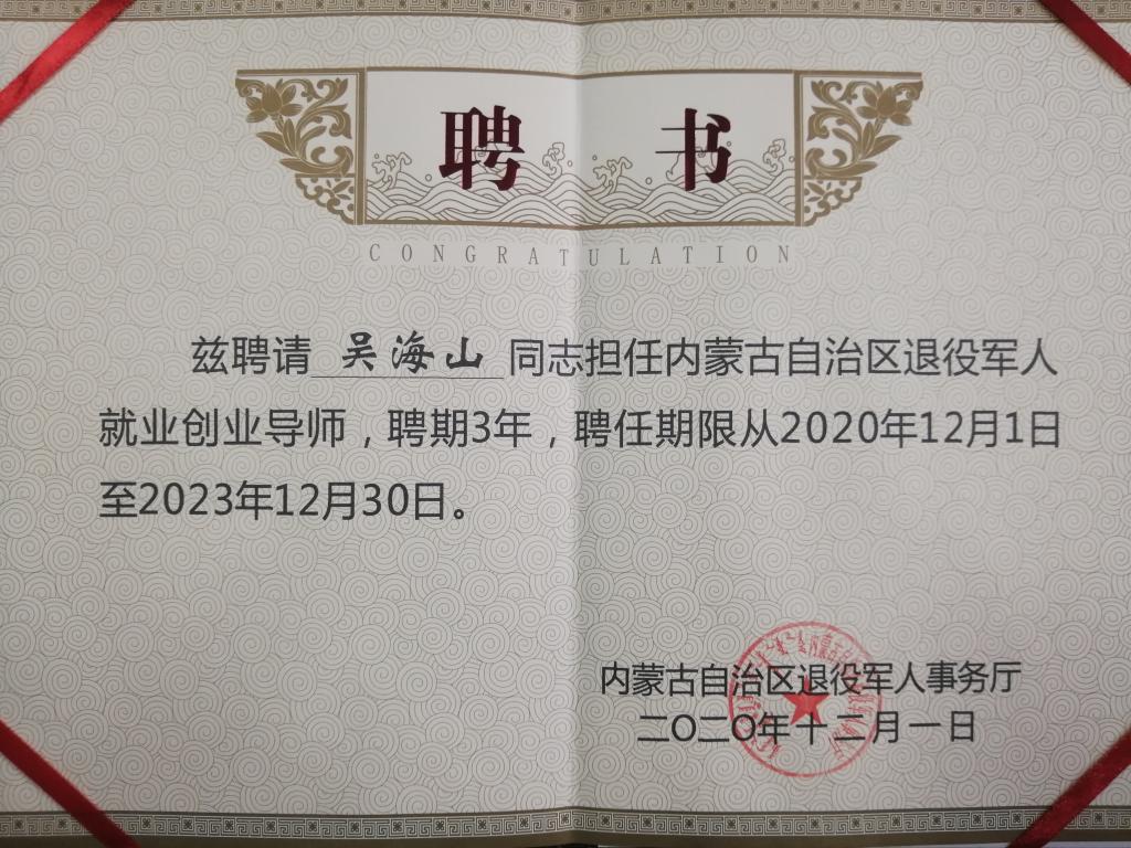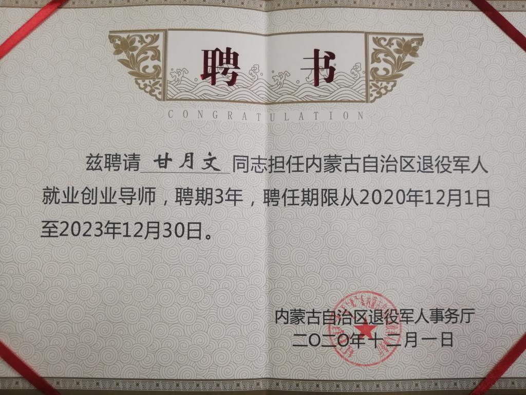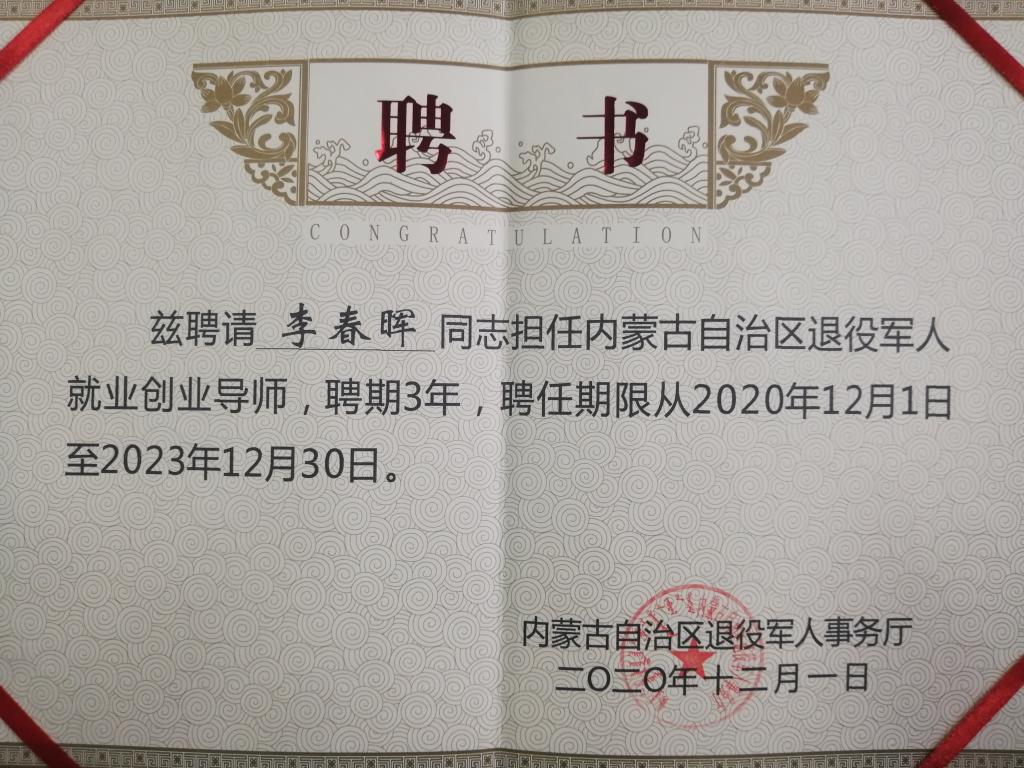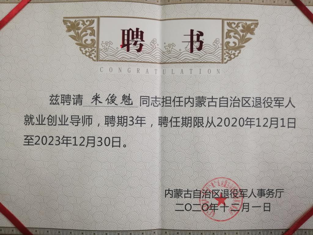 2020年7月,我校yl6776永利集团组织相关学科、领域专家、学者共计54位教师进行了统一申报。经过自治区退役军人事务厅遴选,我校有12位教师被聘为“内蒙古自治区退役军人就业创业导师”。
